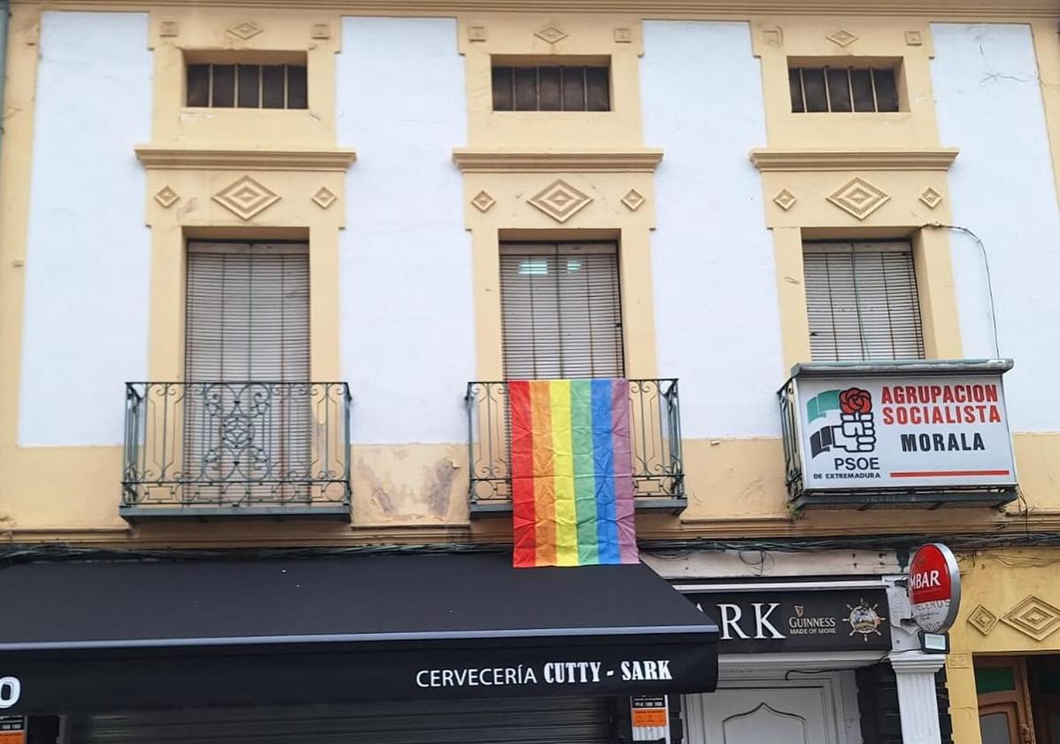 La Agrupación Socialista Morala anuncia que ha puesto en conocimiento de las autoridades e interpuesto la correspondiente denuncia contra quienes han arrancado la bandera LGTBI que tenían colgada en el balcón de su sede, «al parecer al grito de a la mierda el orgullo, tanto orgullo ni tanta polla».