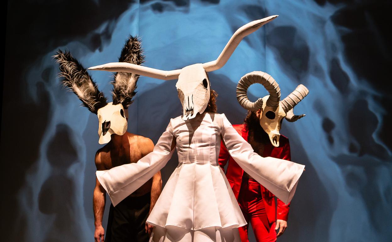 Una 'serrana' sin texto, porque la obra está basada «en un trabajo coreográfico y de teatro físico, donde el espectáculo transita por la identidad cultural de un pueblo, por su memoria y por la creación colectiva del mito, con un punto de partida fundamental, la reflexión de Caro Baroja: Un pueblo difícilmente olvida a sus dioses».