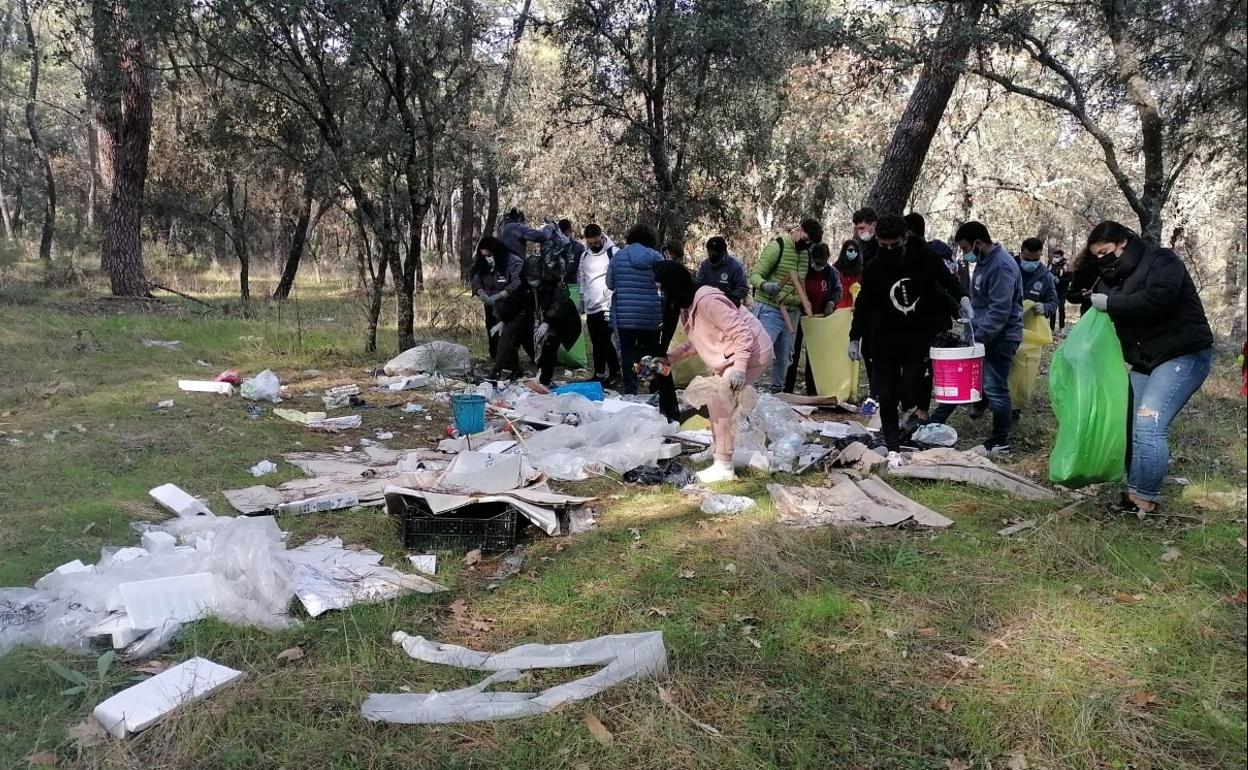 Alumnos del instituto San Martín y de la escuela de FP Dual La Atalaya retiran 150 kilos de 'basuraleza' del pinar de Talayuela