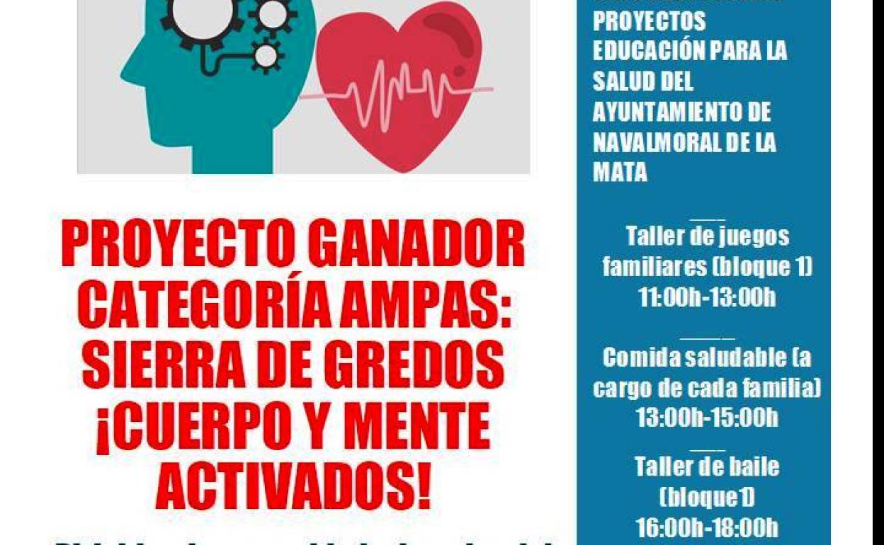 A lo largo de la jornada del sábado se desarrollará la iniciativa ganadora de la XIII Convocatoria de proyectos de educación para la salud, en la categoría de asociaciones de madres y padres de alumnos, denominada '¡Cuerpo y mente activados!'. Lo presentó la ampa del colegio Sierra de Gredos.