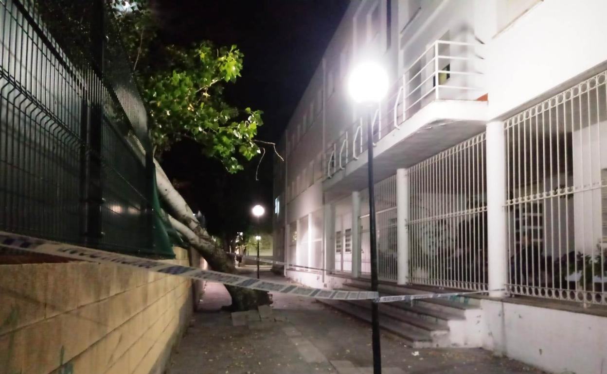 Un árbol próximo a la residencia Mª Ángeles Bujanda se cae sobre la valla del instituto Augustóbriga