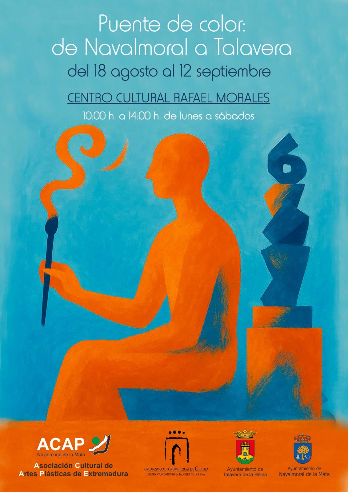 Una treintena de pintores y ceramistas pertenecientes a la Asociación de Artes Plásticas (ACAP) mostrará su obra desde el lunes en el centro cultural Rafael Morales de Talavera de la Reina, con la colaboración con el Organismo Autónomo Local de Cultura y de los dos ayuntamientos. 'Puente de color: de Navalmoral a Talavera' es el título de la exposición, que podrá visitarse hasta el 12 de septiembre.