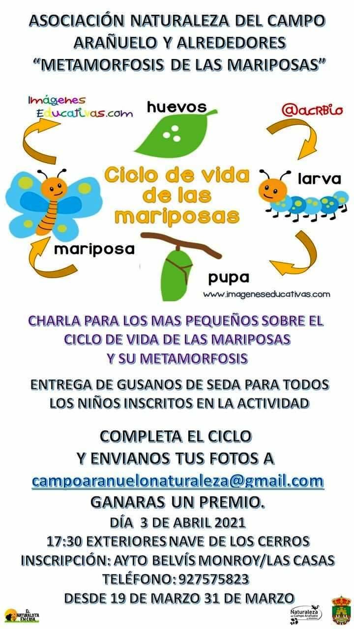 Se trata de una charla sobre las mariposas y su metamorfosis promovida por el Ayuntamiento de Belvís y Las Casas para los niños de los dos municipios