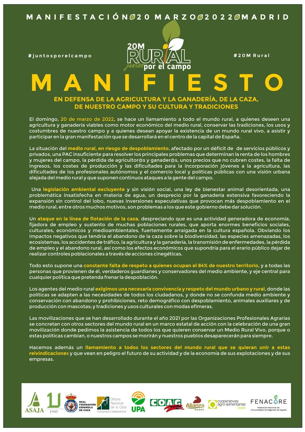 También se protestará contra la prohibición de la caza de la tórtola o el lobo, la de usar munición de plomo a partir del próximo año o la del silvestrismo (capturar y cuidar en cautividad a pájaros como los jilgueros para su adiestramiento al canto).