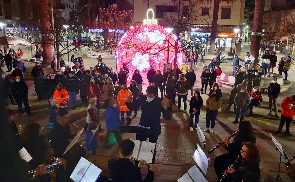 La Banda de Música de Navalmoral estrenó escenario en la noche del viernes para ofrecer su tradicional Concierto de Navidad, la fachada de la Casa de Comillas, dirigido tanto a un público fiel, como a los vecinos que pasaban en esos momentos por la zona peatonal. El concierto forma parte de la programación cultural de diciembre, que este fin de semana tiene como principal protagonista a la danza.