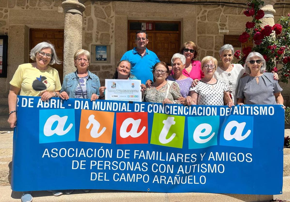 La asociación de mayores Nuestra Señora Virgen de los Remedios, de Berrocalejo, y el alcalde, Ángel Pedro Martínez, entregaron a la Asociación de familiares y ... amigos de personas con trastornos del espectro autista del Campo Arañuelo, Aratea, los 1.700 euros recaudados con motivo del mercadillo solidario celebrado recientemente.