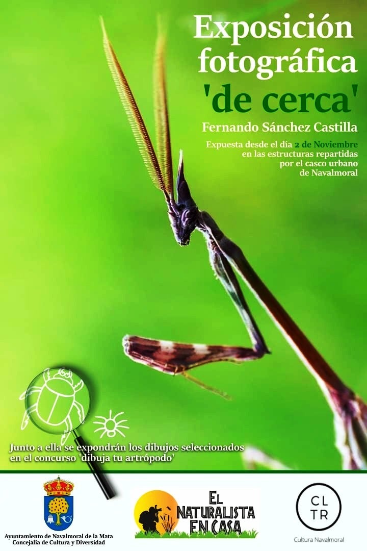 «Quiero invitaros a todos a ver una nueva exposición al aire libre, que he titulado 'De cerca'. Está expuesta por todo Navalmoral y podrás disfrutar de ella a cada paso. Junto a mis fotografías podréis ver los dibujos de los niños seleccionados en el concurso Dibuja tu artrópodo favorito», dice el autor en la presentación.
