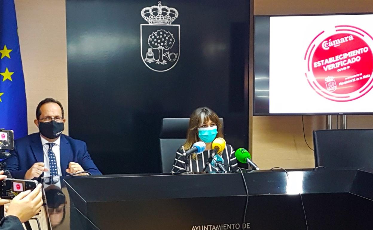 La Cámara de Comercio de Cáceres y el Ayuntamiento de Navalmoral han presentado en la mañana del miércoles, en rueda de prensa, el sello 'Establecimiento ... verificado Covid 19', que certificará que el establecimiento adherido a esta iniciativa aplica los protocolos sanitarios establecidos en las Guías de Buenas Prácticas del Ministerio de Industria, Comercio y Turismo.