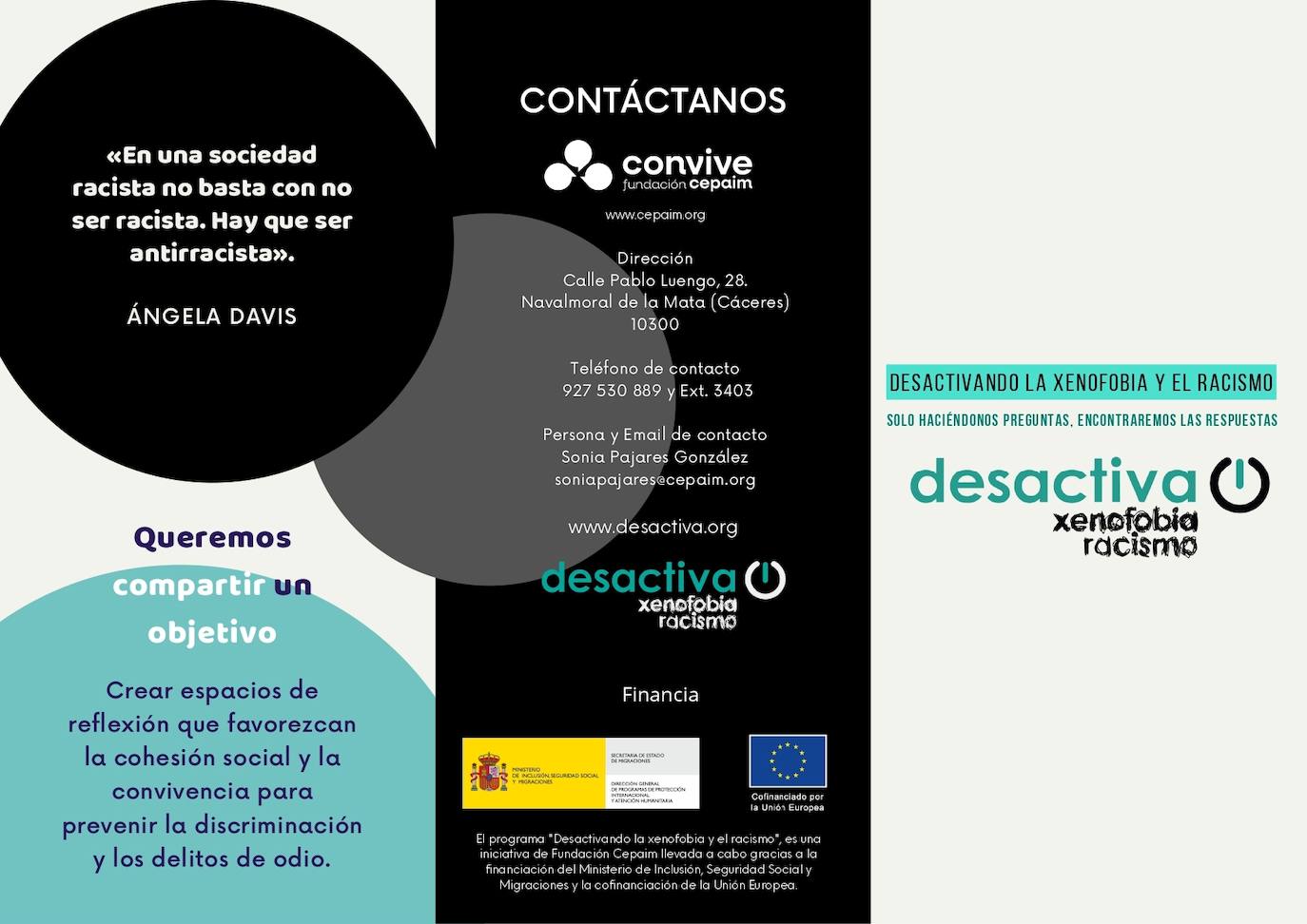 Se trata de un proyecto que ha denominado 'Desactivando la Xenofobia y el Racismo', que a través de los citados ámbitos pretende llegar a la población en general. Para ello proponen la celebración de fechas conmemorativas para fomentar la visión intercultural, antirracista y de género, así como la creación de «espacios de reflexión para favorecer el pensamiento crítico para la prevención del racismo y la xenofobia».