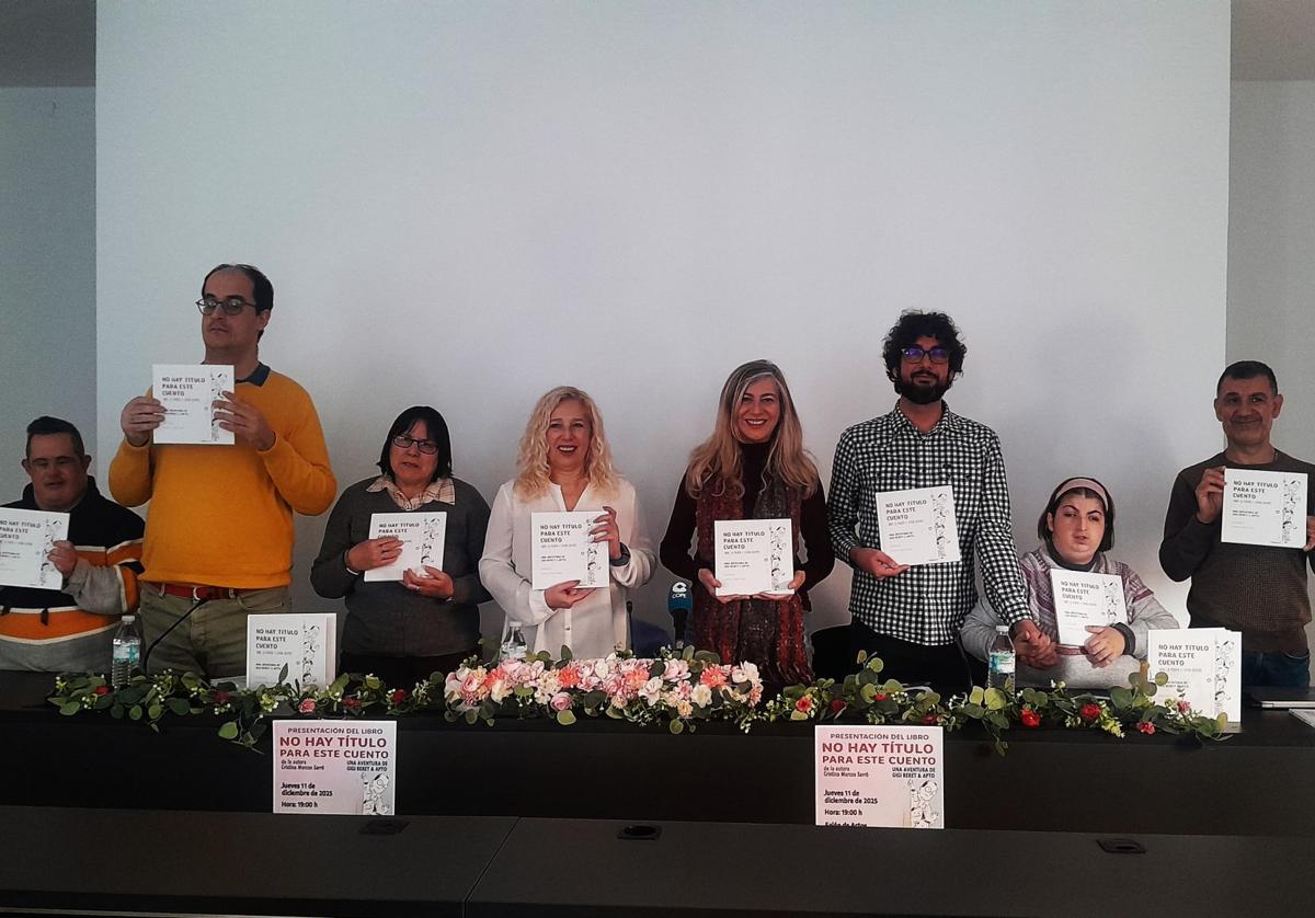 El Taller Ocupacional eligió la fecha del 3 de diciembre, Día Internacional de la Discapacidad, para presentar un libro que protagonizan cinco de sus usuarios, 'No hay título para este cuento'. Su autora es la escritora local Cristina Marcos, cuyo personaje, Gigi Beret, vive en esta ocasión una aventura con APTO. Lo ha hecho de forma desinteresada, destinándose al centro el dinero que se obtenga con su venta.