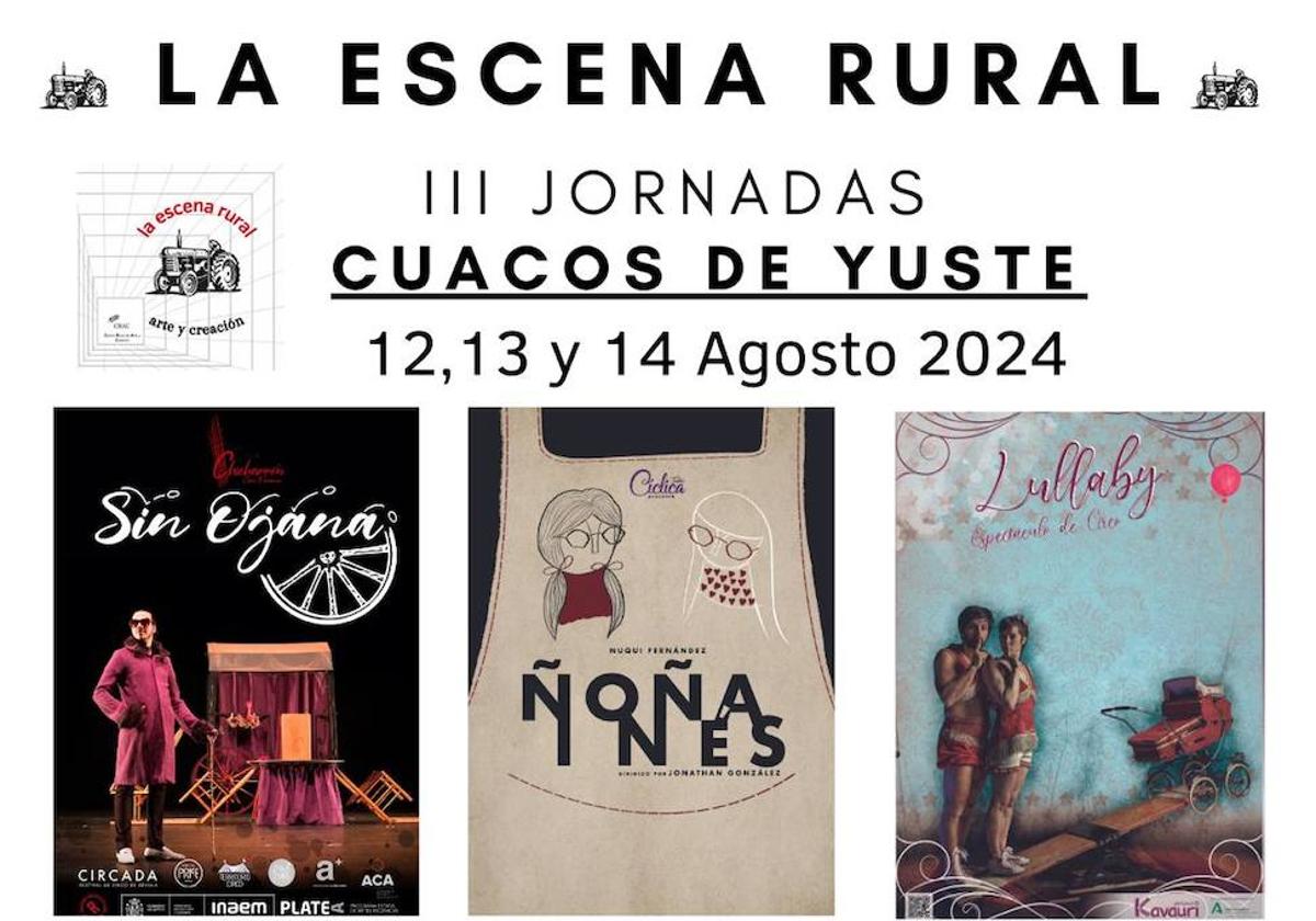 Seis actividades teatrales, humorísticas, de circo, comedia y un concierto flamenco componen la programación de las terceras jornadas La Escena Rural, que acogerá Cuacos de Yuste entre el lunes 12 y el miércoles 14.