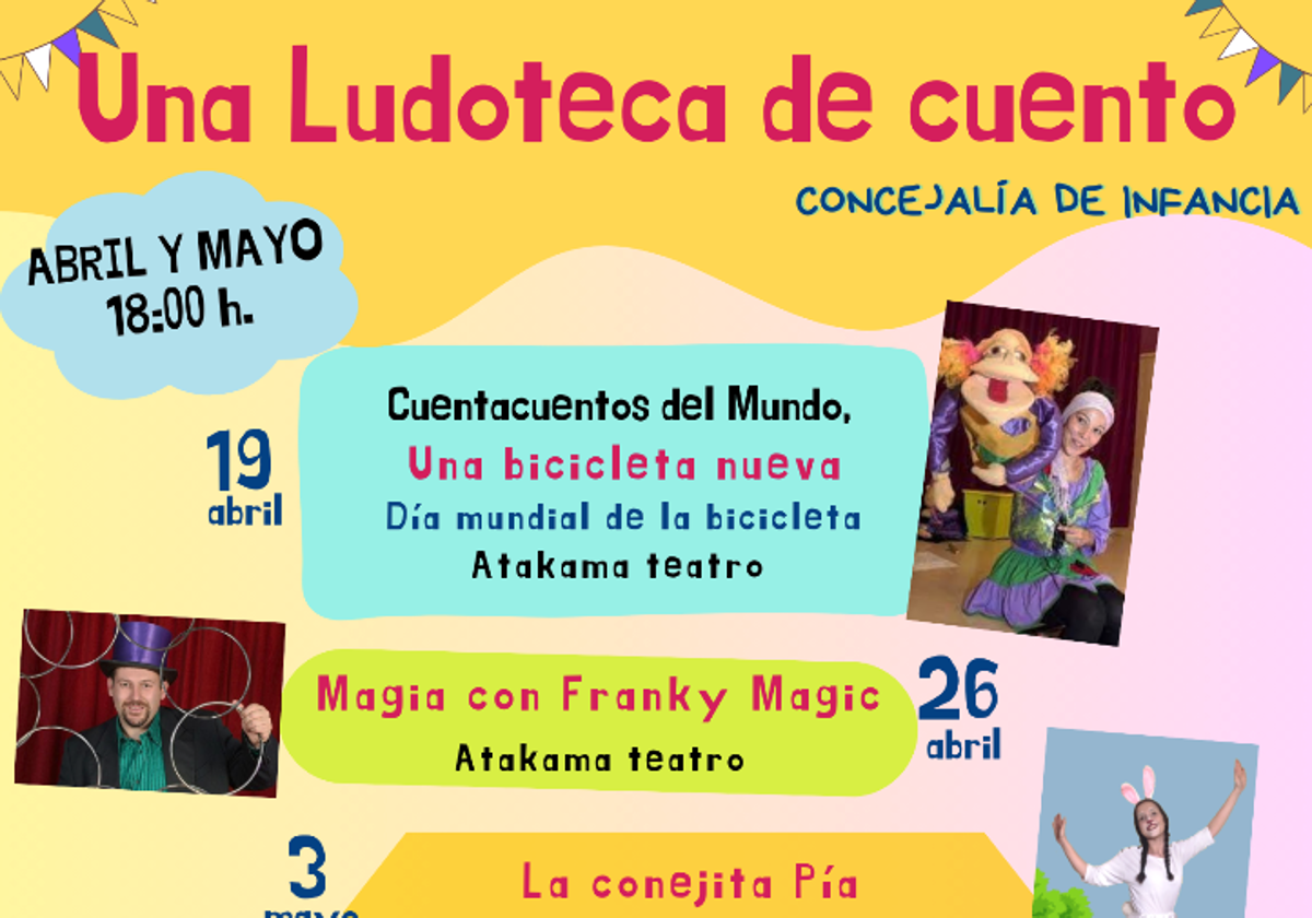La concejalía de Infancia ha programado una serie de espectáculos infantiles de cuentacuentos y magia los viernes de abril y mayo. Y aunque con aforo limitado, al realizarse en el centro de ocio Diversia, están abiertos tanto a los niños y niñas que participen en la ludoteca como a aquellos que deseen asistir.