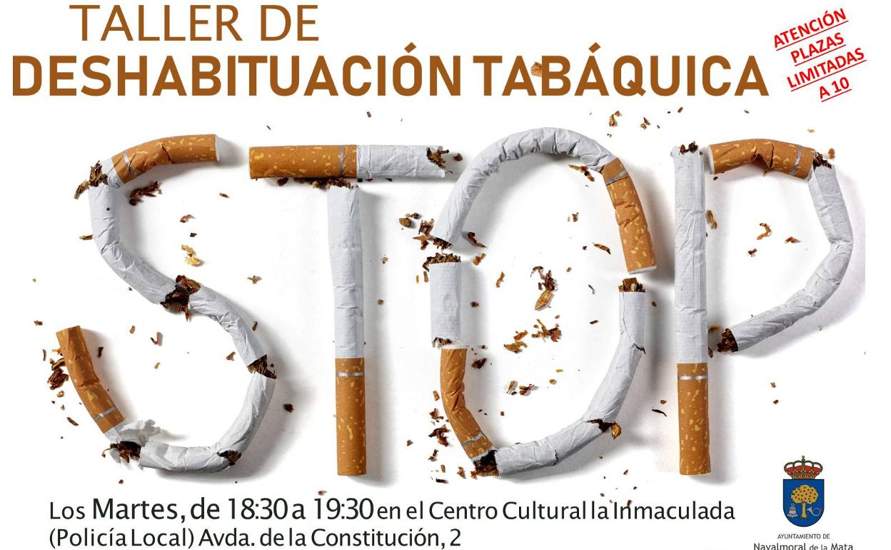 Así lo dice la propia concejalía al anunciar la celebración de un nuevo taller de deshabituación tabáquica desde finales de mes en el centro sociocultural La Inmaculada, en colaboración con la Asociación Española Contra el Cáncer. Consta de cinco sesiones -que se harán los martes de 18:30 h. a 19:30 h. - y dos más de seguimiento.