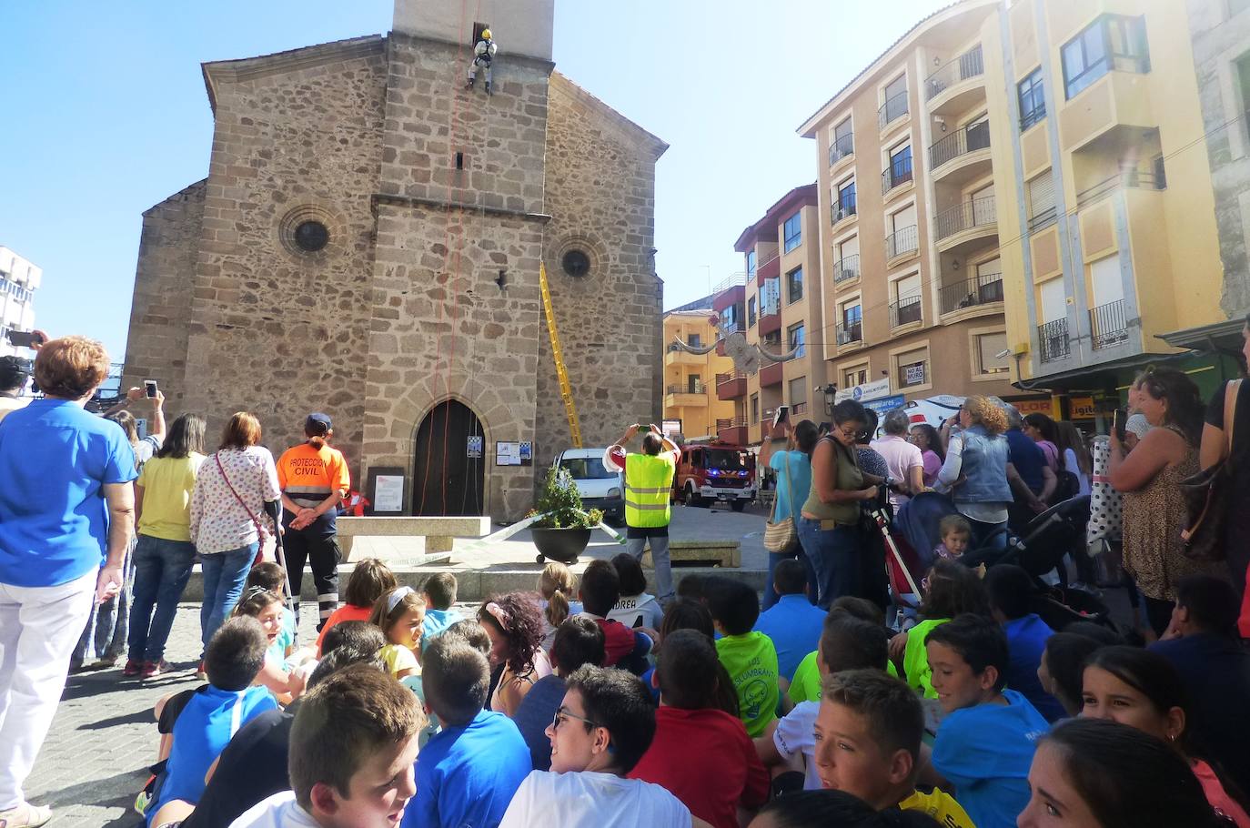 Para terminar, destacar el numeroso público se concentró el viernes en las inmediaciones de la iglesia de San Andrés para presenciar el simulacro de accidente en altura en el que los bomberos del SEPEI rescataron a un trabajador que se quedó colgado de la torre al perder el conocimiento. También intervinieron Policía Local, Guardia Civil, Protección Civil y Cruz Roja.