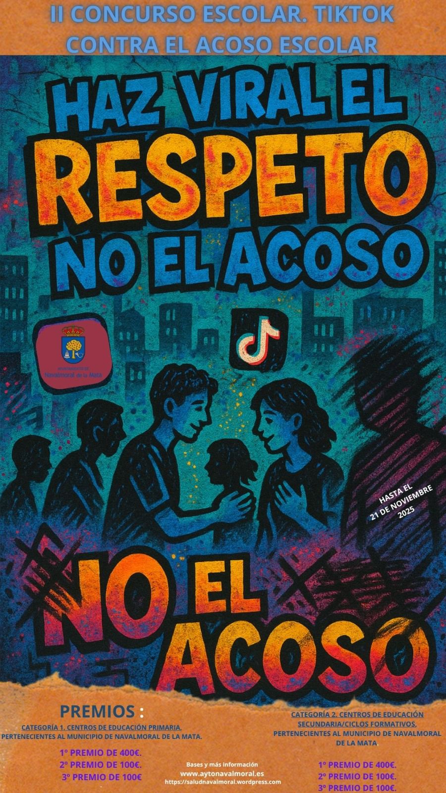 El Ayuntamiento de Navalmoral, a través de la concejalía de Sanidad, ha convocado el II Concurso de TikTok contra el acoso escolar. Una iniciativa que busca «fomentar la concienciación y sensibilización frente a esta problemática entre la población más joven del municipio».