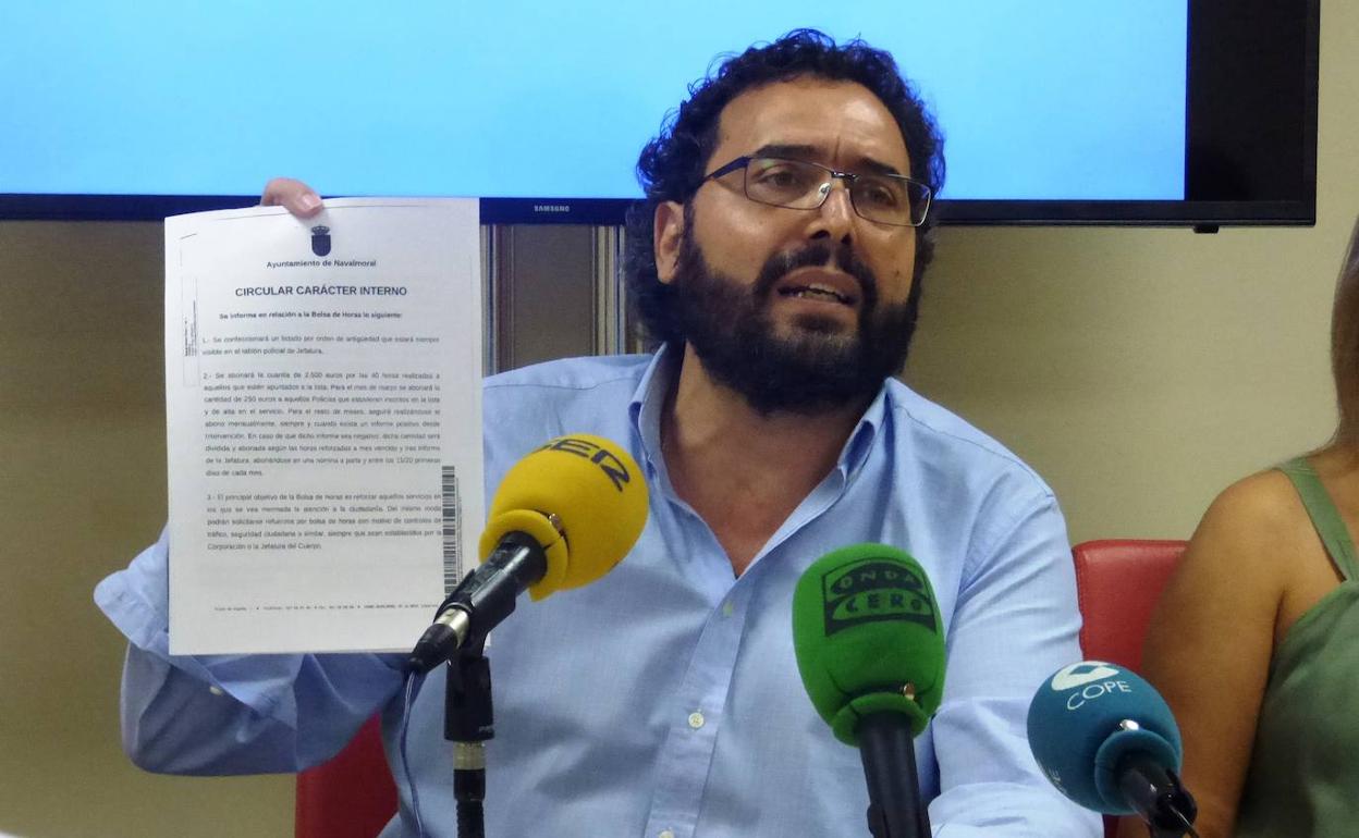 Jaime Vega muestra una circular en la que la alcaldesa se compromete a abonar 2.500 euros por 40 horas extraordinarias