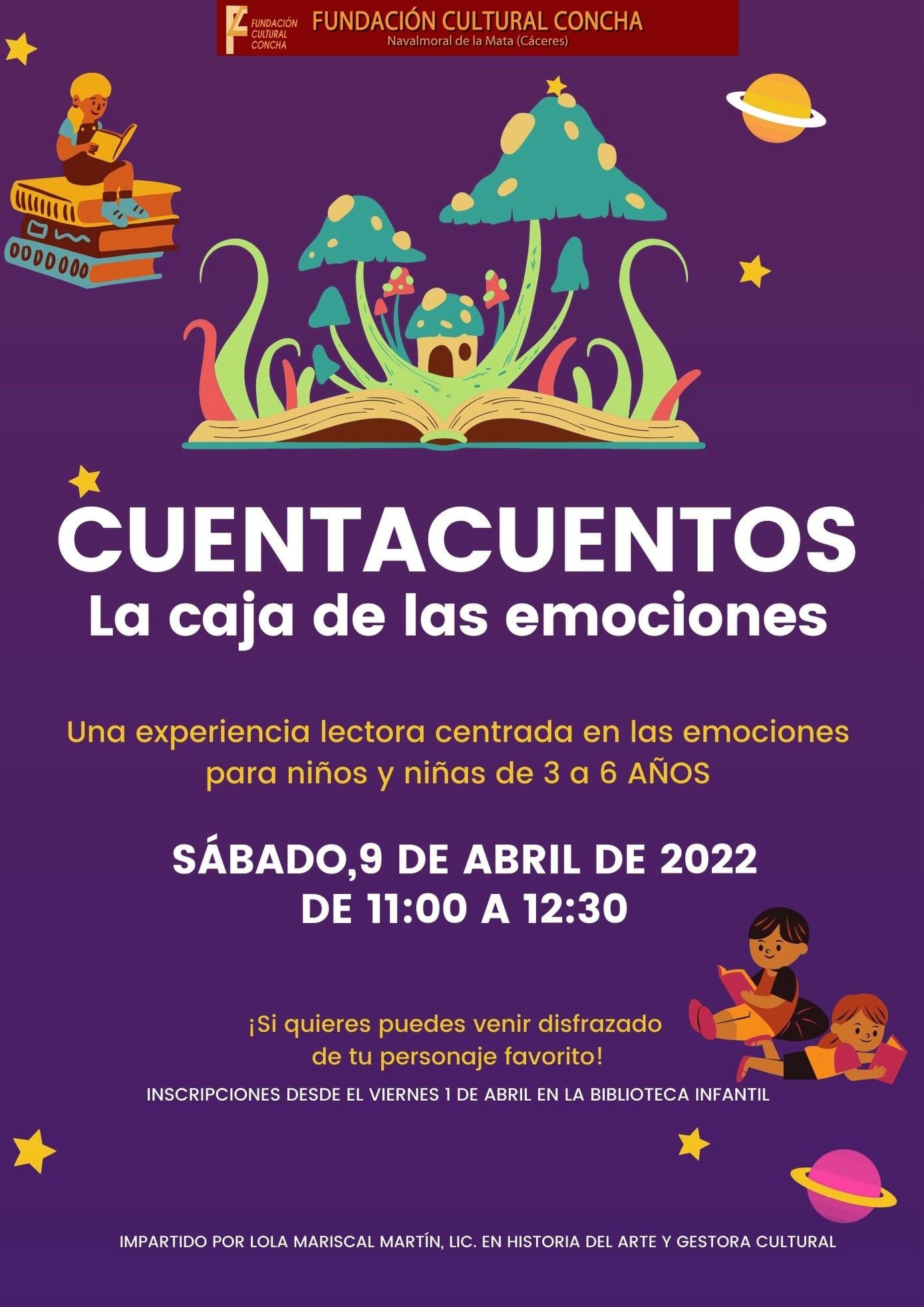 Se anuncia como una «experiencia lectora ... centrada en las emociones para niños y niñas de 3 a 6 años», que se desarrollará entre las once y las doce y media, impartido por Lola Mariscal, licenciada en Historia del Arte y Gestora Cultural.