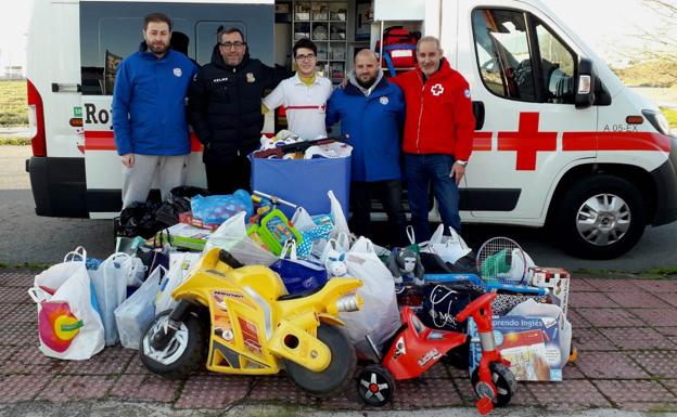 Responsables de la Escuela de Fútbol Campo Arañuelo entregaron el viernes, a representantes de la asamblea local de Cruz Roja, los juguetes que 'cobraron' como entrada en el pasado Torneo de Reyes de Fútbol-8 Solidario, que disputaron 16 equipos de categorías benjamín y alevín en el campo municipal de deportes.