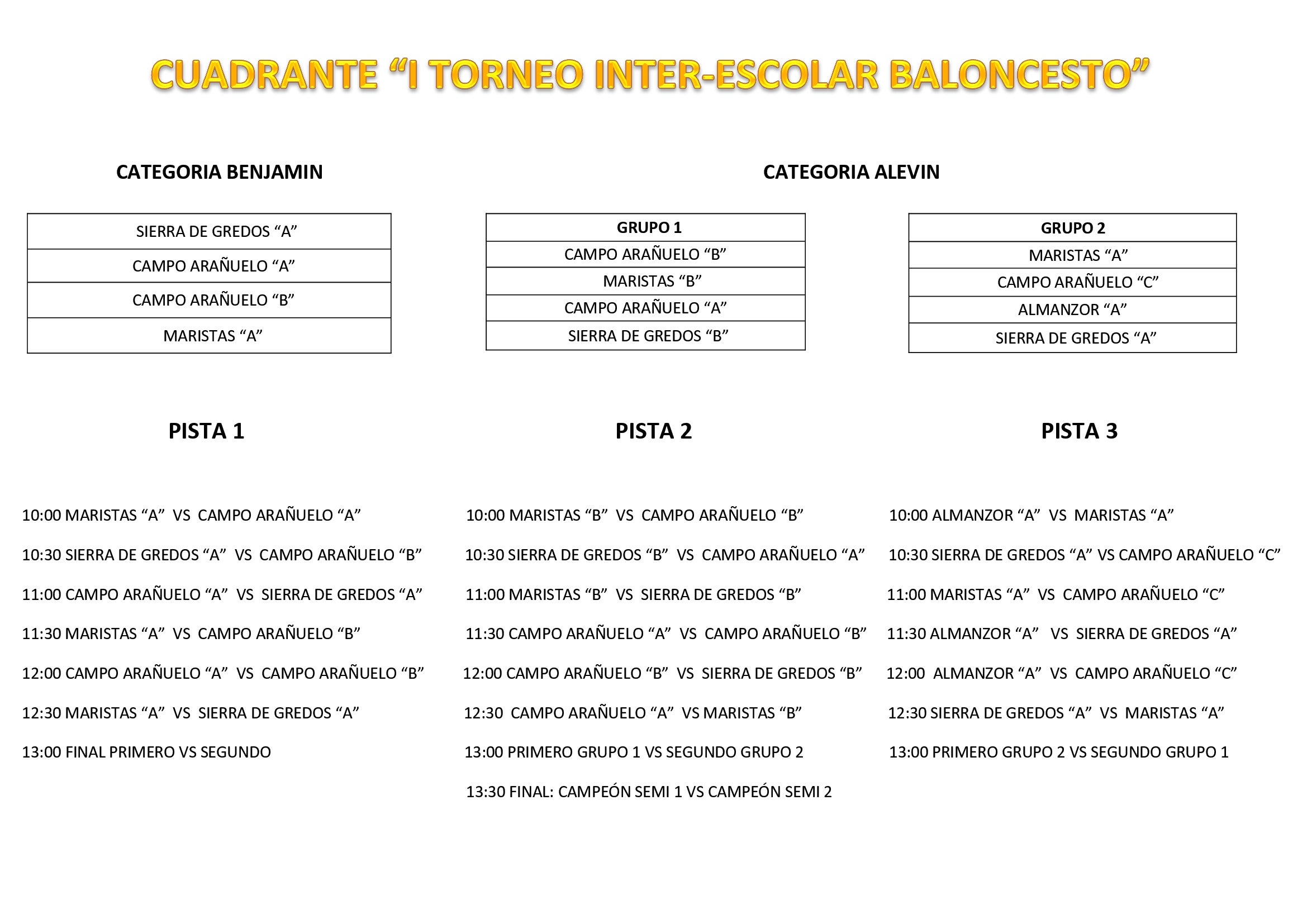 Desde la organización se invitó a participar a todos los colegios locales, habiéndolo hecho Campo Arañuelo, Sierra de Gredos, Almanzor y Maristas.