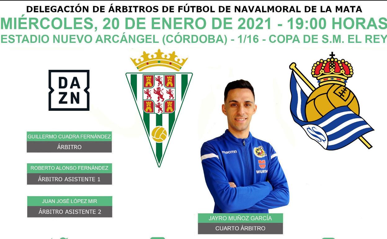 El pasado mes de noviembre, el árbitro moralo Carlos Agraz Díaz era designado para la previa interterritorial de la Copa del Rey, en el partido entre el Rusadir y el Rincón de la Victoria, y el martes se publicaba la designación de Jayro Muñoz García como cuarto árbitro en el encuentro de dieciseisavos de final entre el Córdoba y la Real Sociedad.