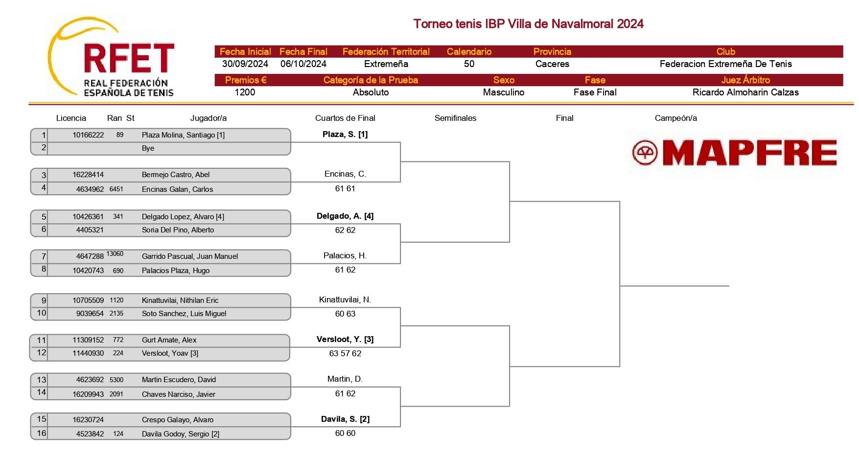 Hasta el viernes cualquier aficionado puede acceder a las instalaciones del club para presenciar los enfrentamientos de un torneo que cuenta con jugadores como Santiago Plaza, número 89 en el ranking nacional, Sergio Dávila (124), Yoav Versloot (224) y Álvaro Delgado (341). Son los cuatro cabezas de serie entre los 15 tenistas que iniciaron la competición.