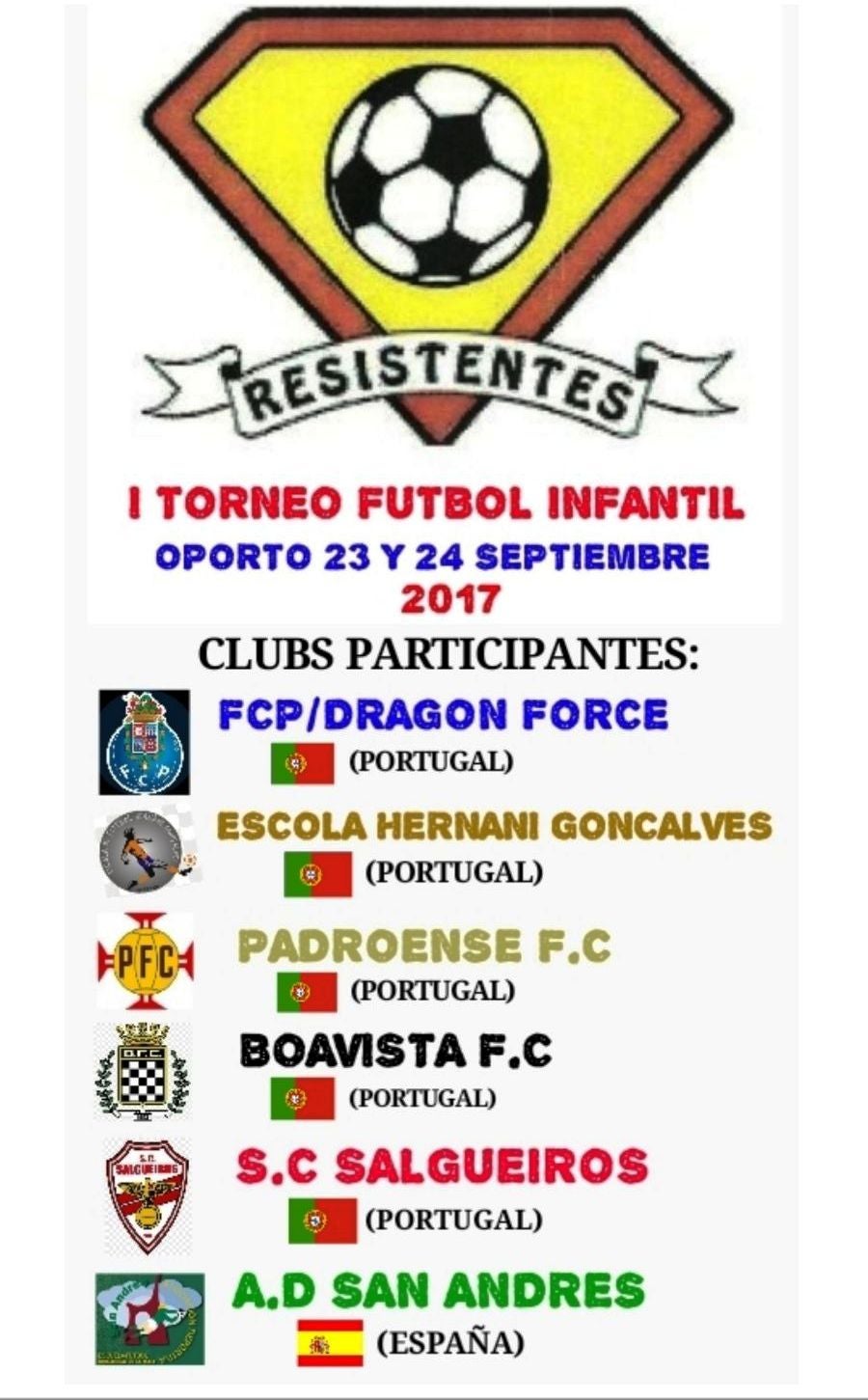 La A. D. San Andrés continúa estrechando sus lazos con el fútbol portugués, muy especialmente con Oporto, y a la presencia de equipos lusos en sus torneos, se une ahora la invitación para disputar el I Torneo de Fútbol Infantil Resistentes, a beneficio de la lucha contra el cáncer, que se jugará este fin de semana en la capital de norte de Portugal.