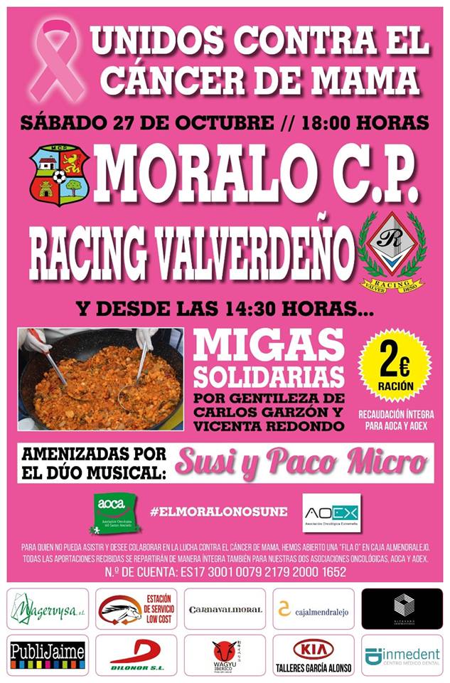 Migas, música y, sobre todo, colaborar con una causa solidaria. Esos son los tres alicientes que ha reunido la directiva del Moralo en el partido que el equipo de Diego Merino jugará el sábado ante el Racing Valverdeño, y que quiere convertir en una fiesta.