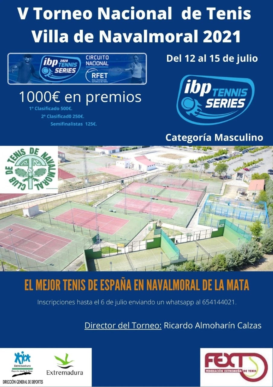 El mejor tenis de España se concentrará durante tres días en Navalmoral. Así anuncian los organizadores el V Torneo Nacional de Tenis 'Villa de Navalmoral', perteneciente al Circuito Nacional ibp Tennis Series, que se disputará entre el martes y el jueves de la próxima semana en las pistas del club de tenis local.