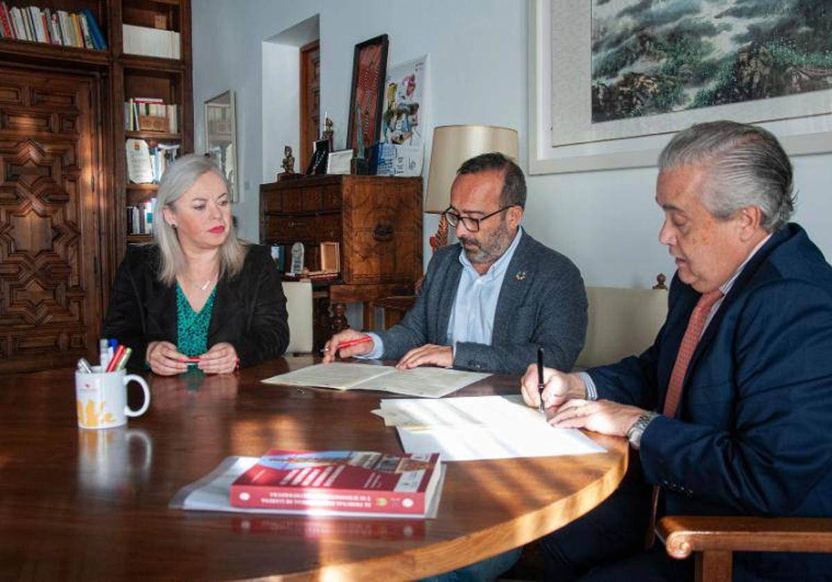 En el acto de firma participaron el presidente de la institución provincial, Miguel Ángel Morales, el decano del Colegio Notarial, Ignacio Ferrer, y la diputada del Organismo Autónomo de Recaudación y Gestión Tributaria (Oargt), María Toscano.