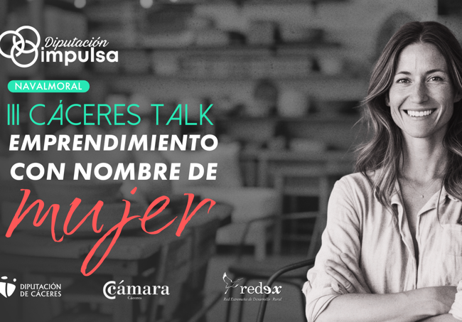 Visibilizar y apoyar proyectos innovadores liderados por mujeres en el medio rural es el principal objetivo del concurso Cáceres Talk Navalmoral que acaban de convocar la Diputación Provincial y la Cámara de Comercio, a través del programa Diputación Impulsa, en su tercera edición.