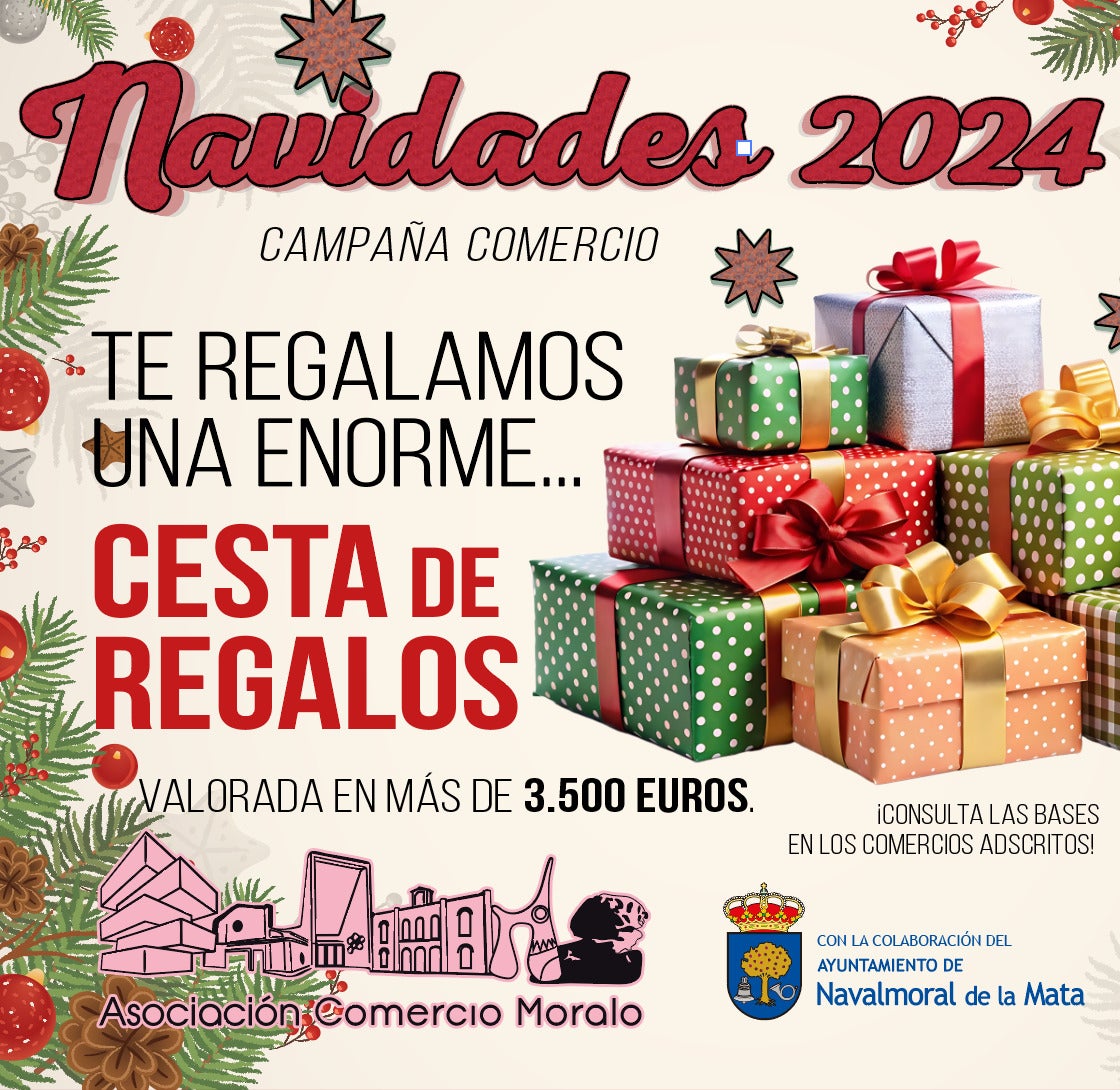 En paralelo, 65 establecimientos de distintos sectores se han unido para premiar las compras en Navalmoral. Se trata de la campaña Navidades 2024 puesta en marcha por la Asociación Comercio Moralo con la colaboración del Ayuntamiento, sorteando una cesta de regalos valorada en más de 3.500 euros.