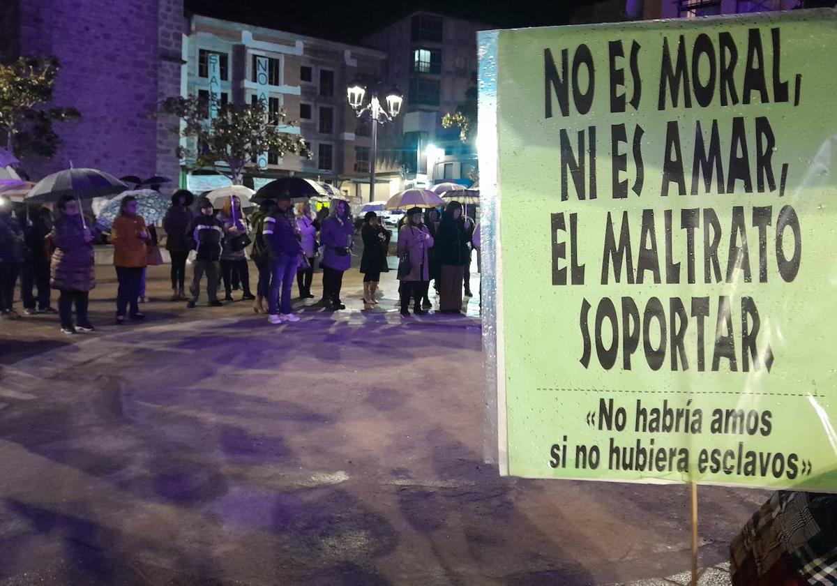 En la plaza de España, bajo los paraguas protegiéndose de la lluvia, cerca de un centenar de personas han acudido a la concentración convocada por el PSOE y Unidas por Navalmoral, consistente en la lectura de un manifiesto, poesías e intervenciones de los asistentes.
