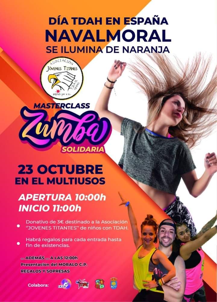 El edificio multiusos acogerá este sábado una masterclass de zumba solidaria. Con motivo del Día TDAH en toda España 'Navalmoral se ilumina de naranja', dicen ... los promotores del evento, que destinarán la recaudación a la asociación local Jóvenes Titanes de niños con TDAH. El precio será de 5 euros.