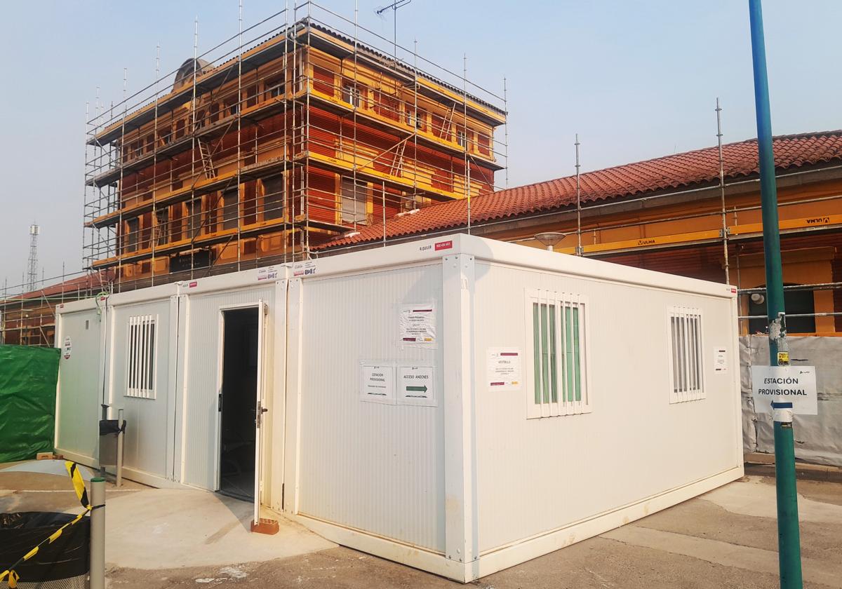Un edificio provisional atiende a los viajeros del tren