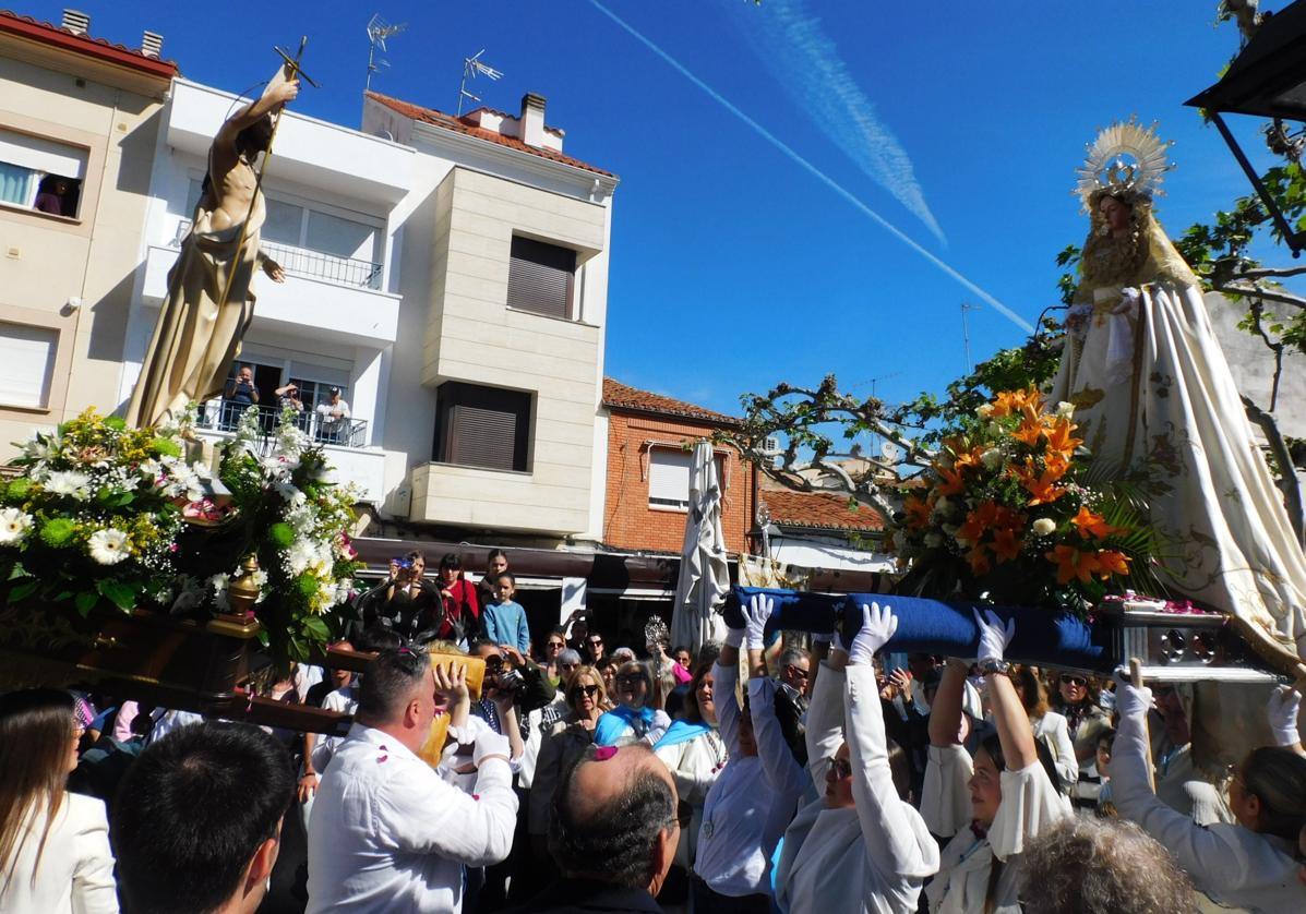 El emotivo encuentro de María Santísima con Jesús Resucitado en la mañana del domingo de Resurrección cerró, un año más, los actos de la Semana Santa morala. Las dos tallas partieron de la iglesia de San Andrés para dirigirse por distintas calles a la plaza Vieja, donde tuvo lugar el encuentro en sí. A partir de ahí Jesús y María recorrieron en procesión el centro urbano.