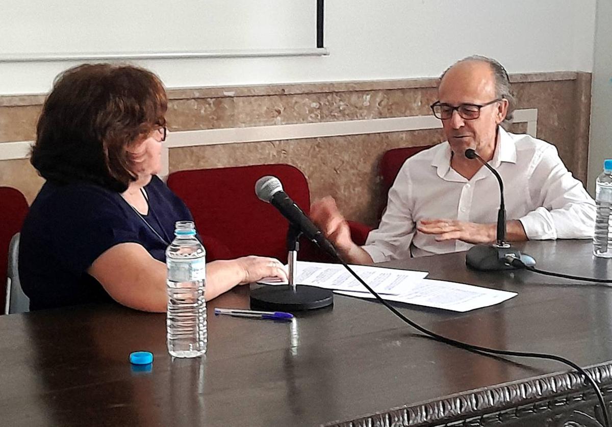 El escritor e investigador local Gonzalo Pérez Sarró cerró en la tarde del sábado la XXXIV Feria del Libro, acompañado por la periodista, y ex-compañera en Radio Navalmoral, Rosa María Bautista.