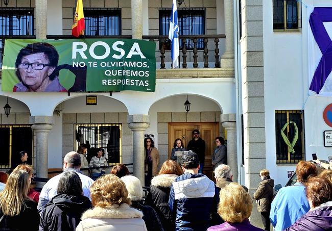 Rosalía Cáceres, Rosa para sus paisanos, desapareció a finales de mayo del 2020 cuando salió a dar un paseo por los alrededores de Bohonal, donde se la recuerda con frecuencia. Lo demuestra la pancarta que cuelga de forma permanente del balcón municipal: 'Rosa no te olvidamos. Queremos respuestas'. Y la familia más que nadie.
