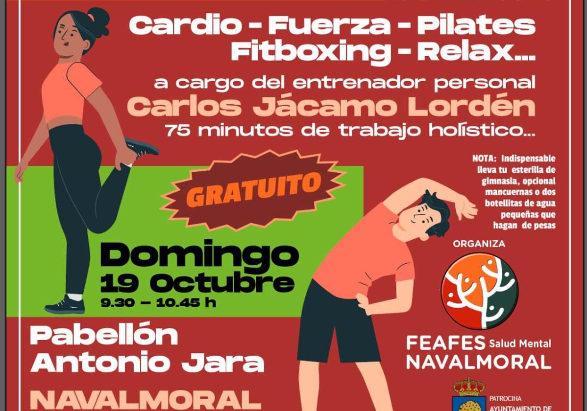 Así se anuncia el Entrenamiento Multidisciplinar que FEAFES Salud Mental Navalmoral ha programado para la mañana del domingo en el pabellón Antonio Jara, que comprende varias disciplinas y que será impartido por el entrenador personal Carlos Jácamo.