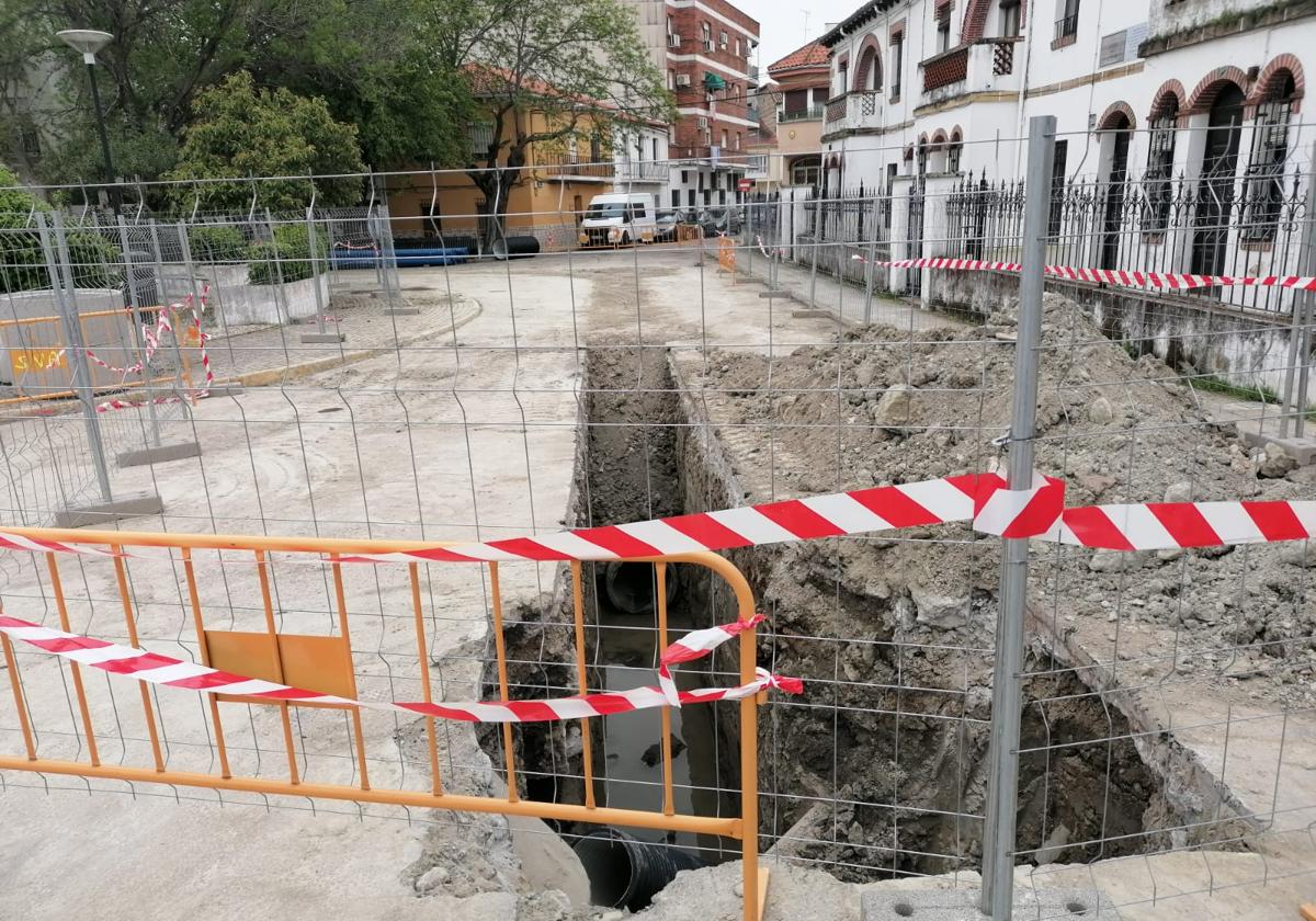 Me ha resultado harto difícil aparcar, pero ya me encuentro en el barrio próximo al parque municipal, dirección salida hacia Madrid. Estamos junto a una plazoleta que está cercada por un vallado amarillo, al lado del cuartel de la Guardia Civil, y a nuestra derecha, hay una larguísima zanja, de unos 3 metros de profundidad, en donde se pueden ver unas canalizaciones.
