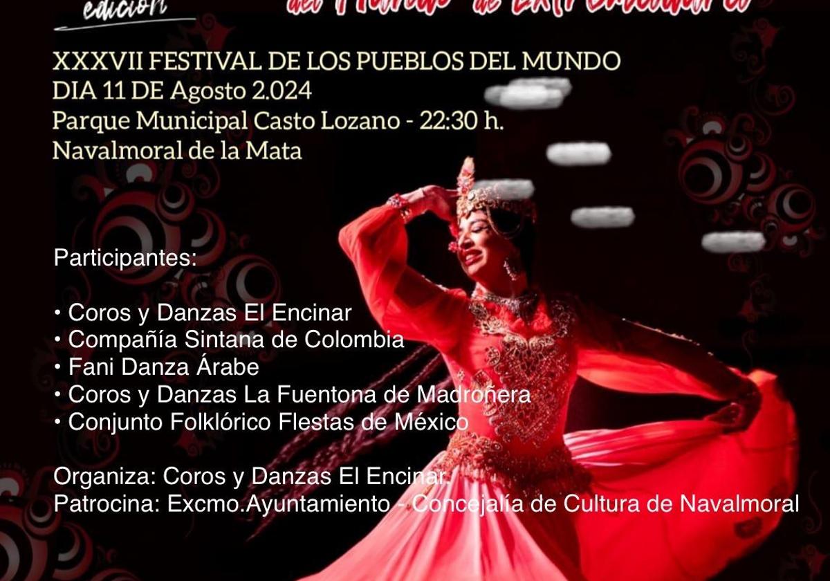 El cartel lo abren en esta edición la compañía colombiana Sintana y el conjunto folklórico Fiestas de México, acompañados por los coros y danzas La Fuentona, de Madroñera; la danza árabe de Fani y el propio grupo El Encinar.