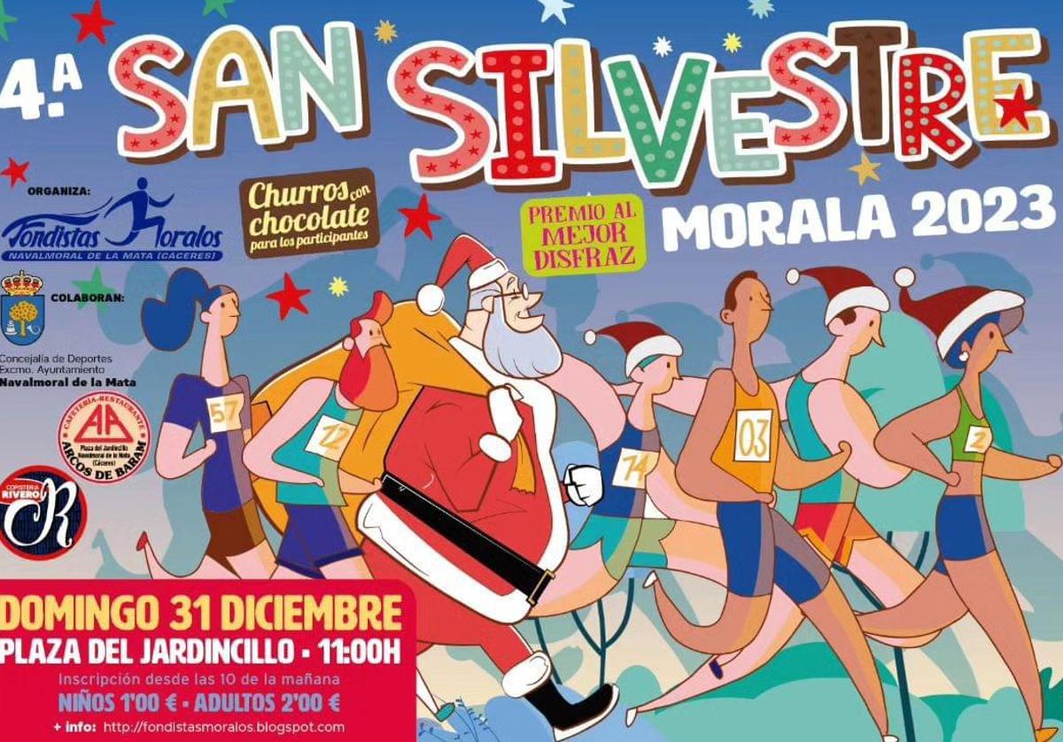 En la mañana del domingo se celebrará la 4ª San Silvestre Morala, y no en la tarde del sábado como figura en algunos carteles y hemos anunciado por error. Será a partir de las 11.00 h. organizada por Fondistas Moralos, con salida desde el Jardincillo y el tradicional ambiente festivo de esta prueba, que incluirá churros con chocolate para todos los participantes y premio al mejor disfraz.
