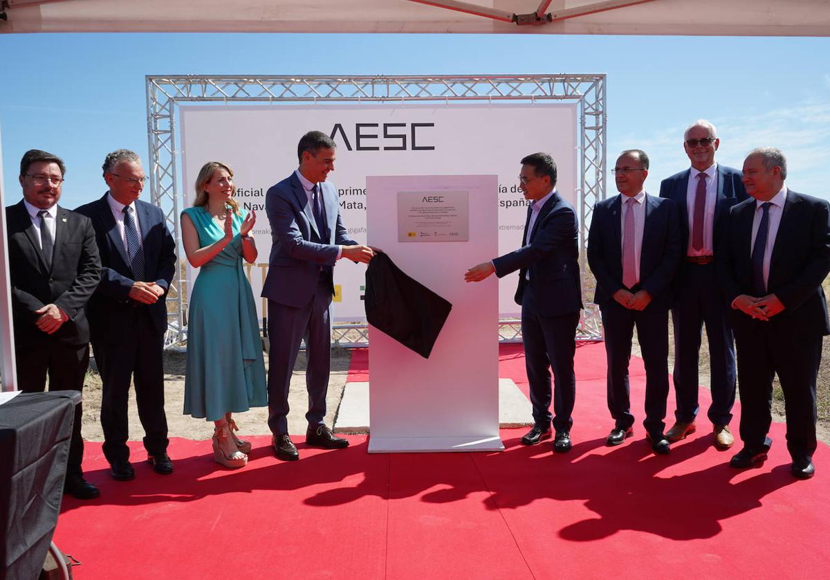 Ese es el texto que figura en la placa que se ha descubierto al mediodía del lunes en los terrenos de expacionavalmoral donde se va a construir la gigafactoría de baterías promovida por el grupo japonés AESC, con Envision como socio, con una inversión millonaria y la creación de varios miles de puestos de trabajo.
