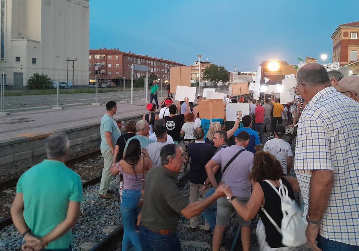 Después de reivindicaciones y varias intervenciones de miembros de la plataforma en la plaza de la estación, donde habían sido convocados a las ocho de la tarde, los participantes en la concentración se han dirigido a la propia estación de tren sobre las nueve menos cuarto y han bajado a las vías, interrumpiendo la circulación del tren que tenía previsto su paso a esa hora con destino a Cáceres.