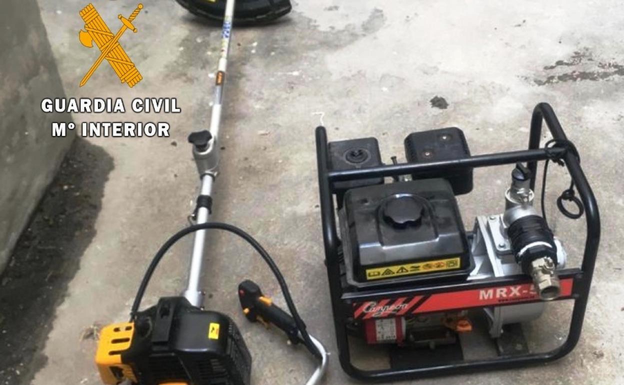 La Guardia Civil tuvo conocimiento de los hechos el pasado día 21. Tras forzar la puerta de acceso a una caseta de aperos de una finca, el arrrestado se llevó la máquina motobomba y la desbrozadora.