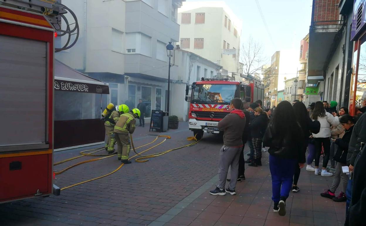 El humo que empezó a salir poco después de las cinco del local, de planta baja, alertó a vecinos y viandantes, que llamaron de inmediato a la Policía Local y a los bomberos del SEPEI. Éstos desplazaron dos vehículos para sofocar las llamas y evacuar el humo, que afectó tanto al velador como al interior del establecimiento.