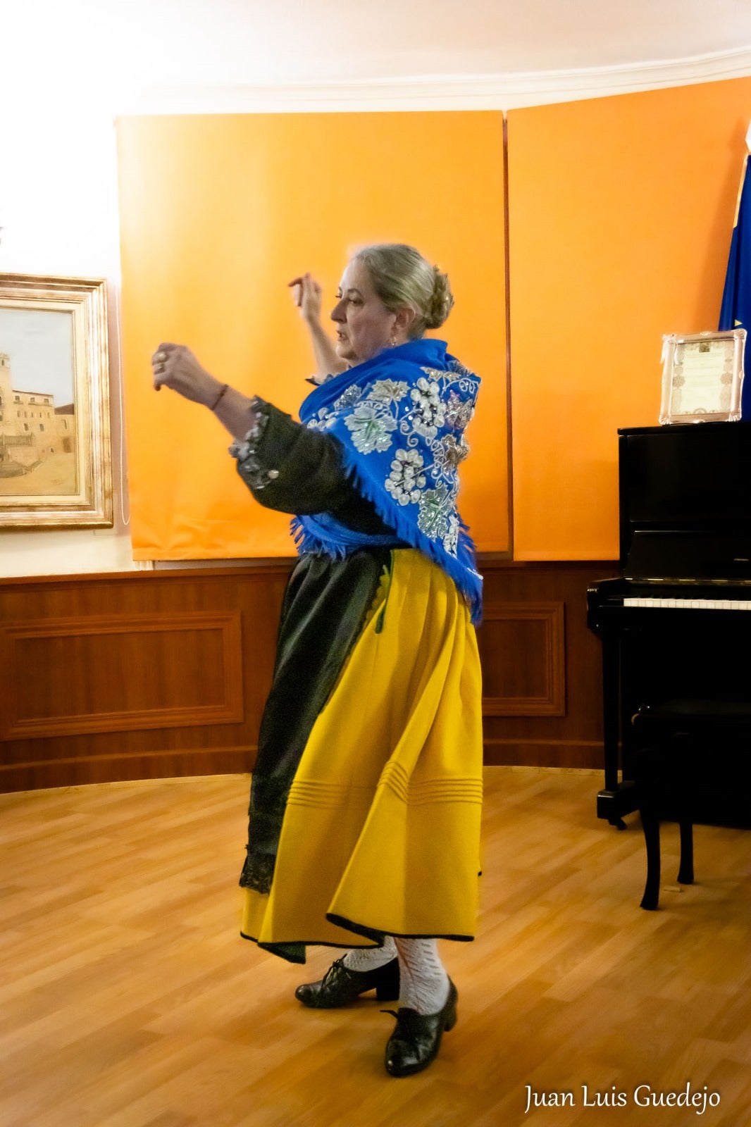 Inmaculada Carranza, vocal de Coro, obsequió a los presentes bailando la jota extremeña 'El Redoble' y Alberto Lebrato interpretó al piano las notas del Himno de Extremadura, coreado por todos.