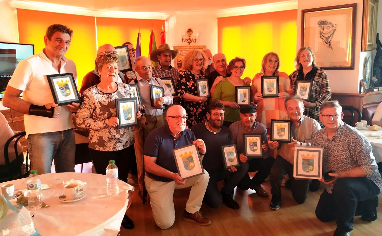 Tras la comida, se escucharon los versos del poeta moralo Eladio Sanjuán y de la vicepresidenta del Hogar, Pilar Rubio, que fue la conductora junto a Goyo Martín. También se repartieron diplomas y unos cuadros con el emblema del Salto de Torrejón realizados por Fernando Rodríguez.