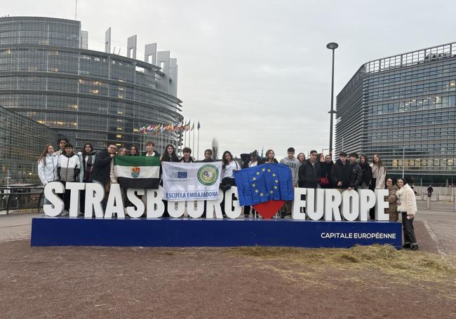 Un grupo de 25 alumnos y dos profesoras de la Escuela Embajadora del Parlamento Europeo IES Zurbarán asistieron a finales de la pasada semana a la sesión de Euroscola en Estrasburgo. Allí compartieron el espacio 'Louise Weiss' con alumnos de países de la Unión Europea, Reino Unido y Ucrania para «experimentar en qué consiste ser un eurodiputado por un día».