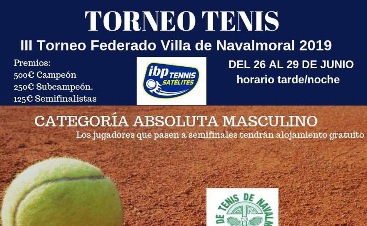 El jueves 27 comenzará el Torneo Nacional de Tenis 'Villa de Navalmoral' con 1.000 euros en premios en metálico y que por primera vez se ha incluido dentro del circuito nacional «ibp Satélites», donde participan los mejores jugadores españoles a nivel profesional.