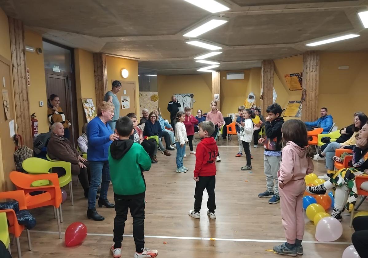 Durante el taller también se han realizado guerras de refranes y guerras de globos, actividades que han permitido a los mayores recordar frases cargadas de sabiduría popular y a los más pequeños moverse y soltar energía. Tampoco han faltado divertidas «penalizaciones» a los grupos perdedores, donde han salido a escena canciones como «Pajaritos a volar» o «Bob Esponja», entre otras dinámicas acompañadas con música.